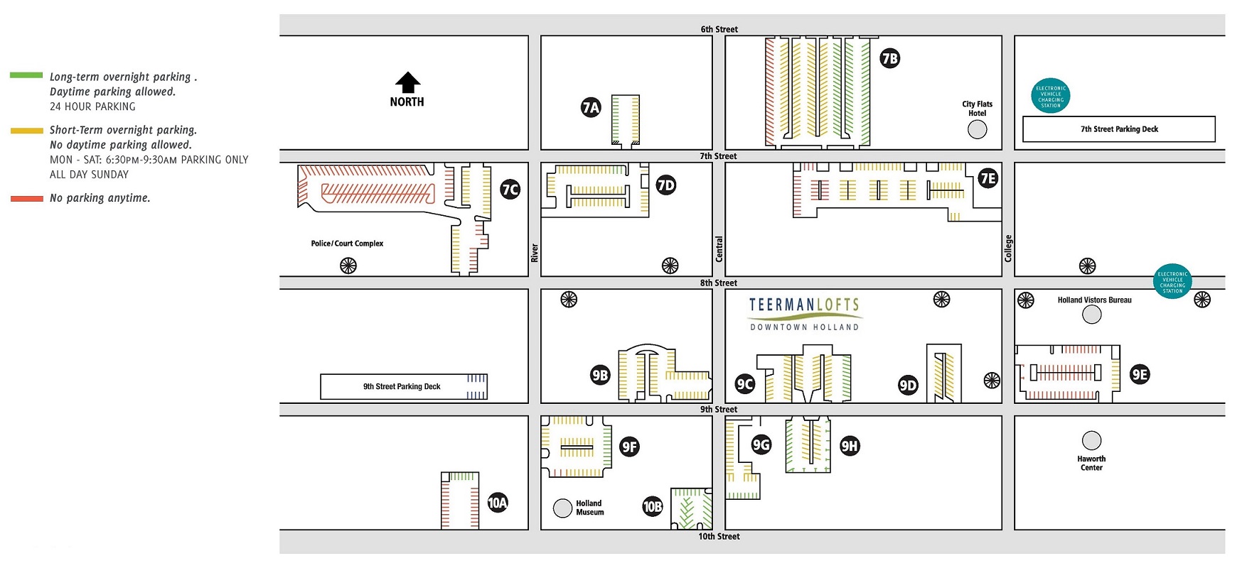 Note: For driving directions to the main parking lot, enter 15 East 9th Street, Holland, MI into your GPS.